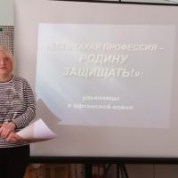 Сегодня в библиотеке техникума прошла интерактивная беседа «Есть такая профессия — Родину защищать: ульяновцы в афганской войне», которую провела для студентов первого курса Тд 11-22, Рд 11-22 сотрудник краеведческого отдела Дворца книги О.В. Елягина.