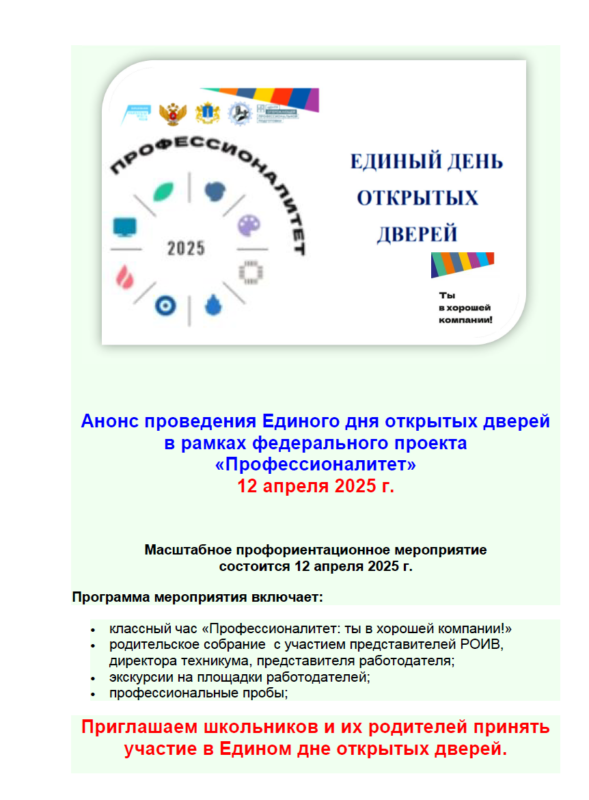 💥 Единый день открытых дверей – отличная возможность погрузиться в мир профессий и сделать первый шаг к успешной карьере!!!