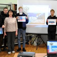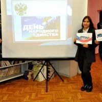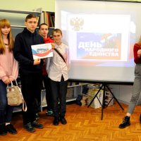 В преддверии данного государственного праздника в читальном зале библиотеки техникума прошли интерактивные занятия «Страна непобедима, когда един народ». В них приняли участие студенты и классные руководители восемнадцати групп техникума. Ребята с интересом посмотрели медиа презентацию об истории возникновения Дня народного единства, видеофильм о современной России, с удовольствием отвечали на вопросы викторины, узнали интересные факты о нашей многонациональной Родине.
