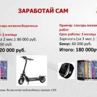 Например, слесарь механосборочных работ, срок работы от 2 месяцев, зарплата (за 2 мес.) 80 000 руб., бонус 40 000 руб. Итого: 120 000 руб.