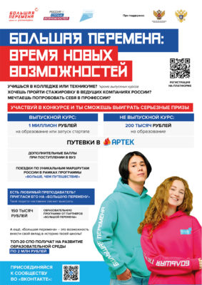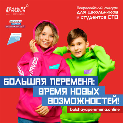Стартовал третий сезон Всероссийского конкурса «Большая перемена» для учащихся учреждений СПО. Конкурс проводится в рамках Национального проекта «Образование» при поддержке Министерства просвещения РФ.